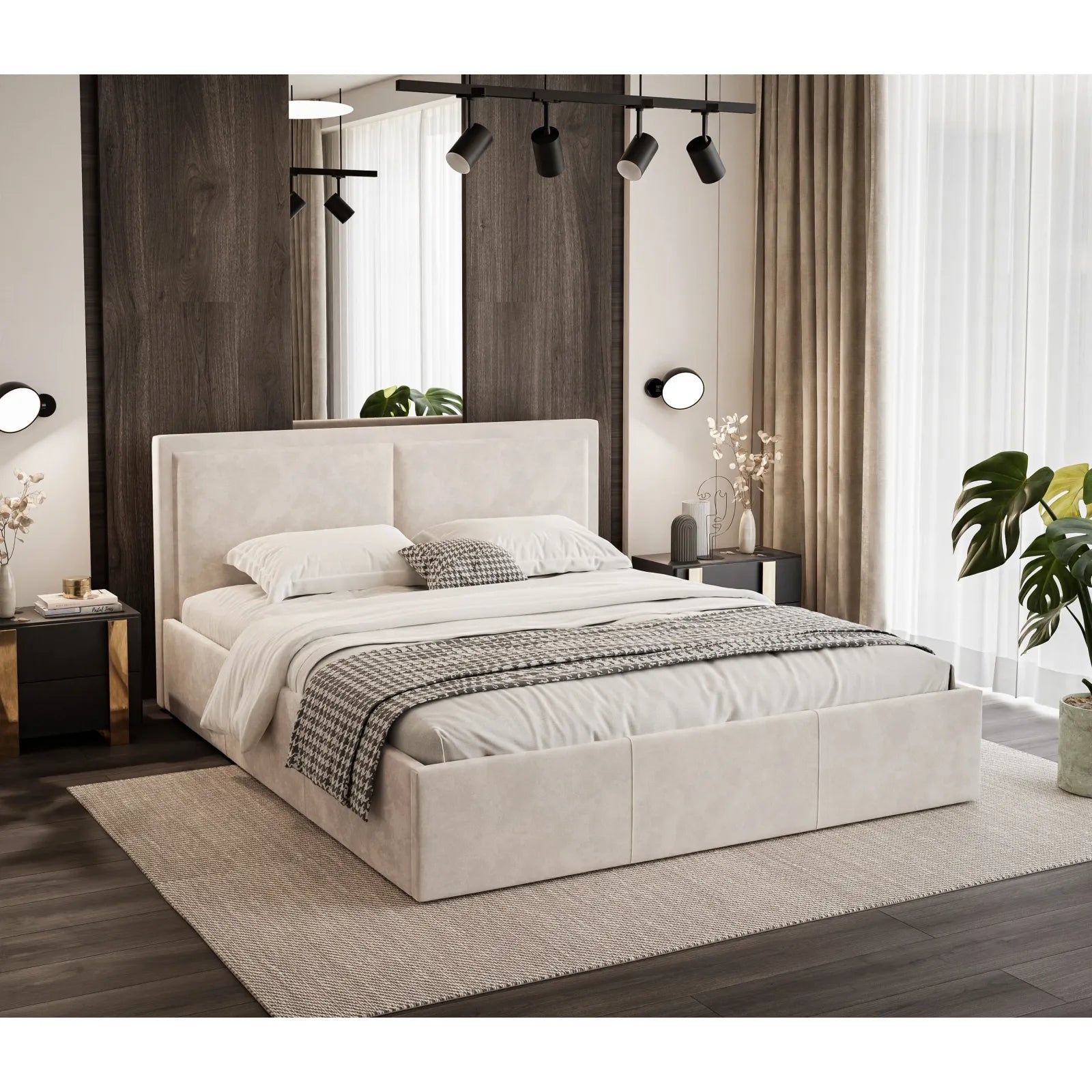 Izturīgais koka un MDF rāmis garantē stabilitāti un ilgstošu lietošanu. Visa konstrukcija ir pārklāta ar augstas kvalitātes OPERA velūra audumu - mīkstu, elastīgu un patīkamu pieskārienam, kas piešķir gultai eleganci un komfortu.