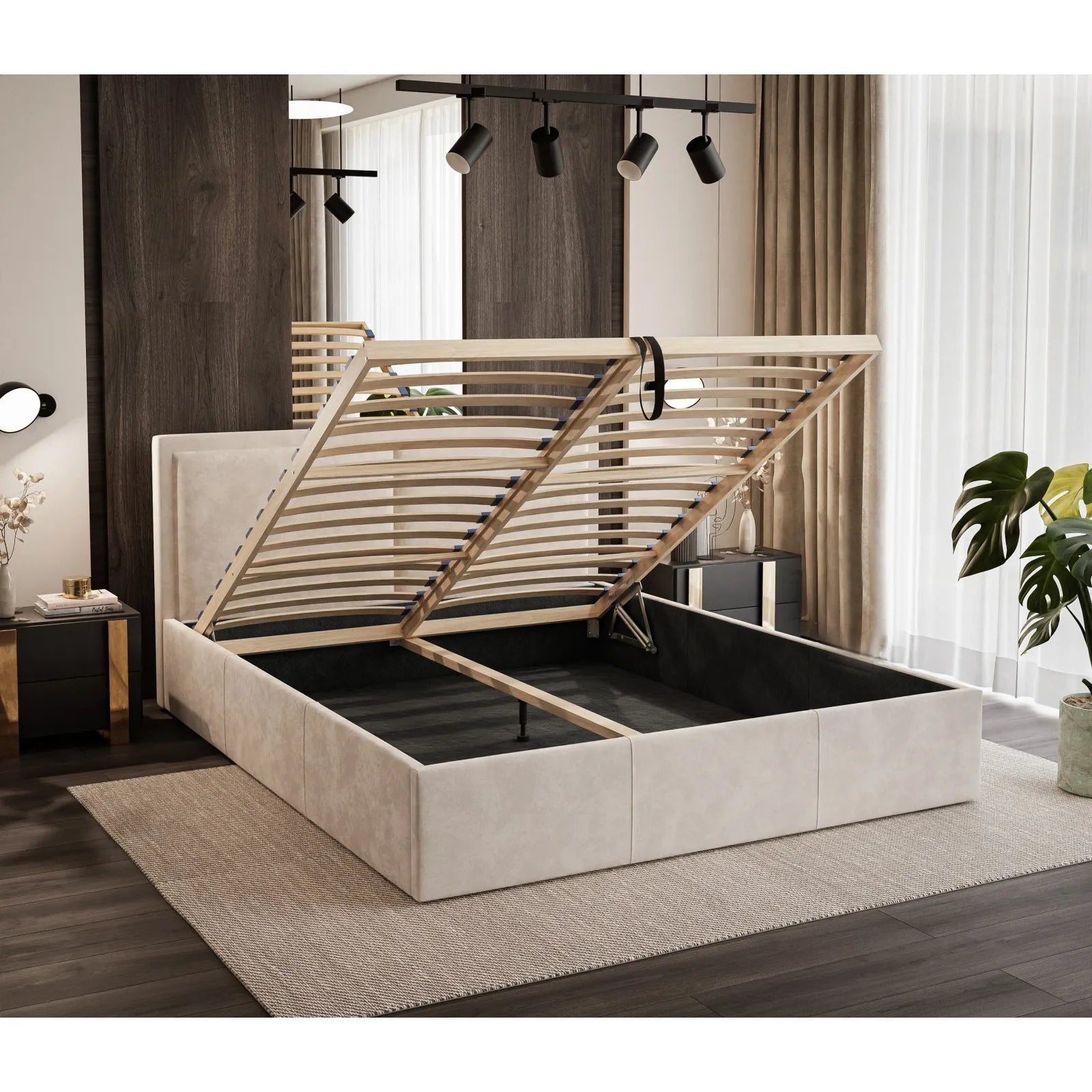 Gultas apakšā atrodas ietilpīga gultasveļas kaste, kurai ir ārkārtīgi ērti piekļūt, pateicoties atsperu pastiprinātajam pacelšanas mehānismam – lielisks risinājums tiem, kas novērtē kārtību un vietas ekonomiju.