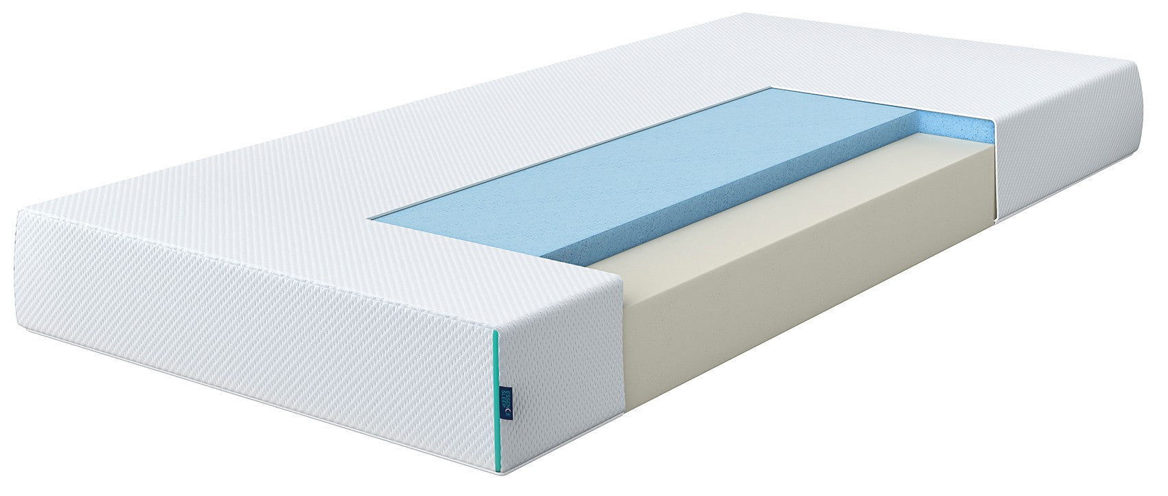 - Sastāv no 14 cm biezas poliuretāna putu pamatnes un 4 cm biezas viskoelastīgas gēla atmiņas materiāla