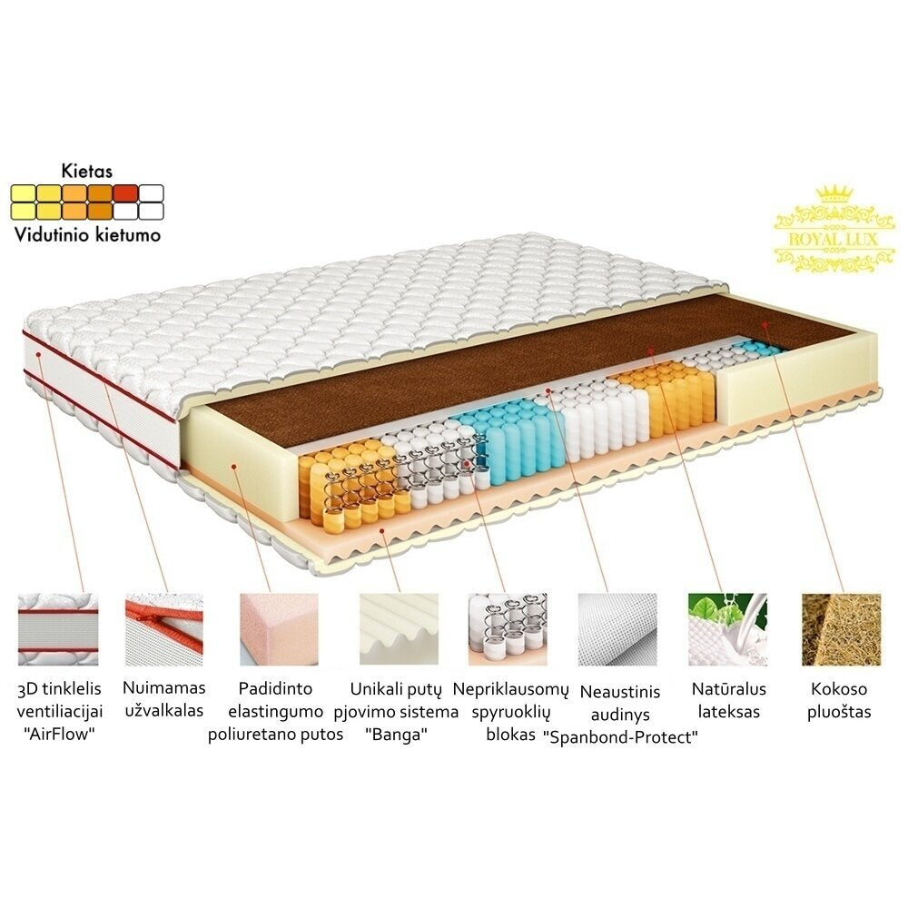 Royal Lux – išskirtinis, aukštos kokybės dvipusis spyruoklinis čiužinys su novatoriška AirFlow sistema ir žiemos/vasaros užvalkalu tiems, kurie nori miegoti kaip karaliai.